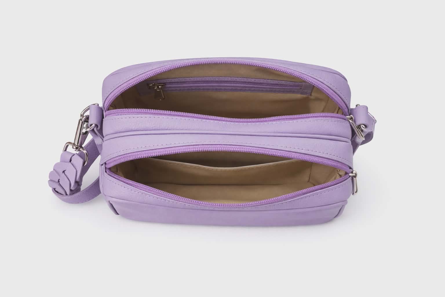 This stylish leather bag features a sleek design with two zippered compartments—one on the front and one on the back—providing easy organization for your essentials. Inside, you'll find two practical pockets: one zippered for secure storage, and another open pocket for quick access to smaller items. Perfect for everyday use, this bag combines both functionality and elegance, offering ample space and a modern look for any occasion.