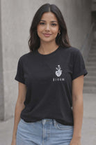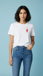 It features a classic crew neck and a relaxed, flattering fit. The front showcases a stylish artistic graphic print, adding a modern and feminine touch to a versatile wardrobe essential. Easy to pair with jeans, shorts, or skirts, this T-shirt is ideal for casual outings, daily wear, or relaxed occasions.