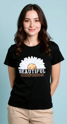 It features a classic crew neck and a relaxed, flattering fit. The front showcases a stylish artistic graphic print, adding a modern and feminine touch to a versatile wardrobe essential. Easy to pair with jeans, shorts, or skirts, this T-shirt is ideal for casual outings, daily wear, or relaxed occasions.
