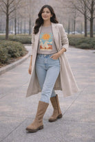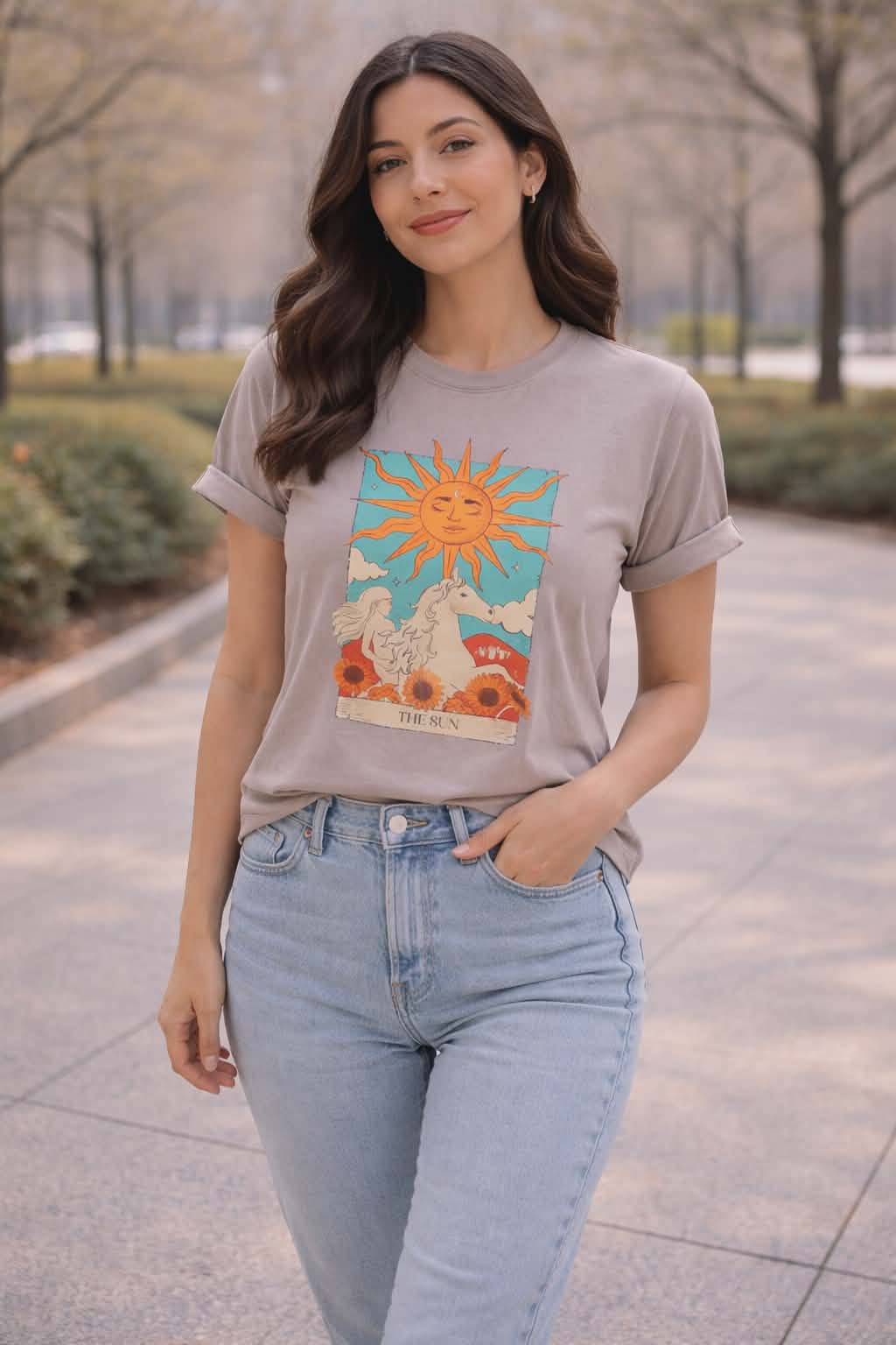 It features a classic crew neck and a relaxed, flattering fit. The front showcases a stylish artistic graphic print, adding a modern and feminine touch to a versatile wardrobe essential. Easy to pair with jeans, shorts, or skirts, this T-shirt is ideal for casual outings, daily wear, or relaxed occasions.